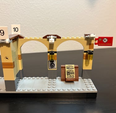 The set comes with Kingās Cross Station and Platform 9¾, plus the Hogwarts Express train and a carriage. I really like how you build the little bridge with the clock and the stairs that go up to the platform. The coolest part is the moving brick wall that lets you āwalkā your minifigures through to Platform 9¾, just like in the movie.